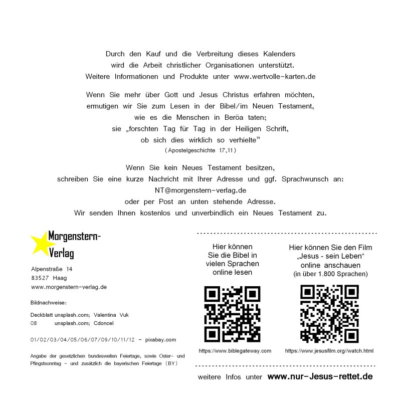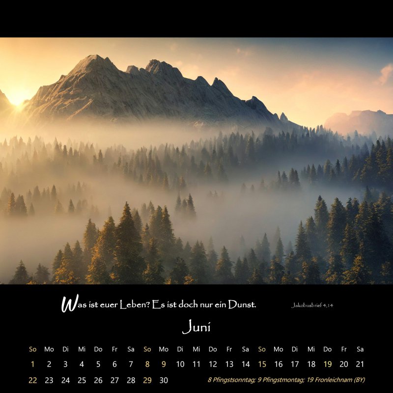 14 Seiten (Deckblatt; 12 Monatsblätter; Schlussblatt); Rückpappe
