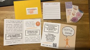 im Umschlag (verschiedene Farben) mit Aufkleber "Gedanken über Dankbarkeit"